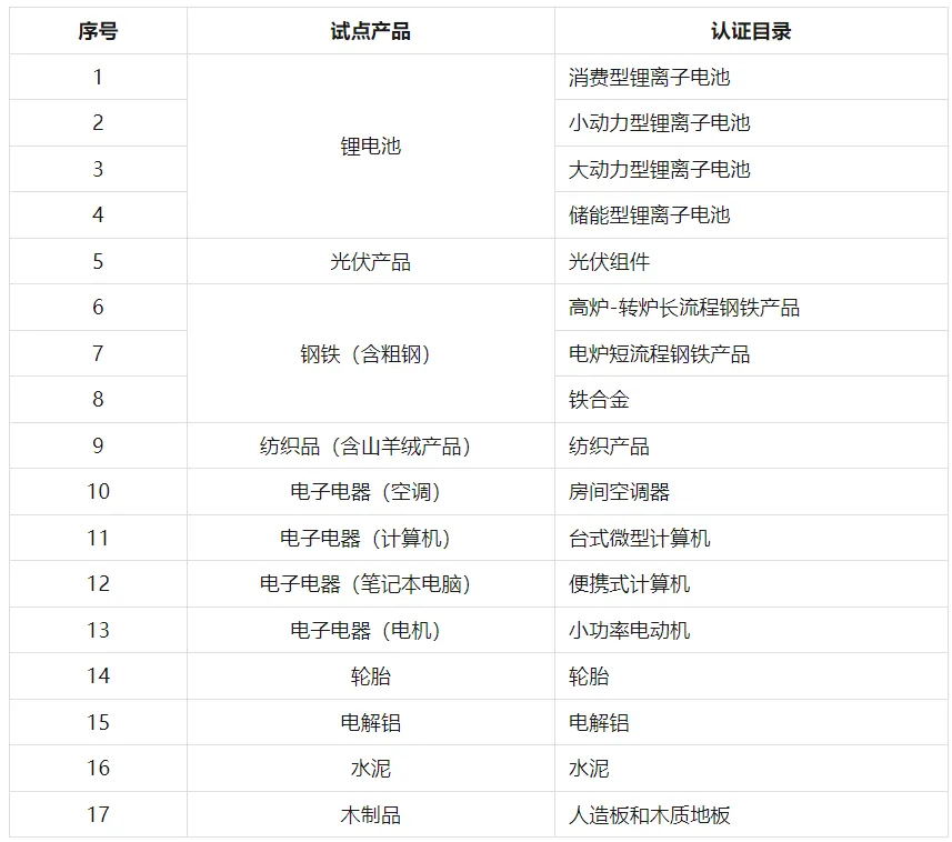 關于印發(fā)《產(chǎn)品碳足跡標識認證試點認證目錄(第一批)》的通知